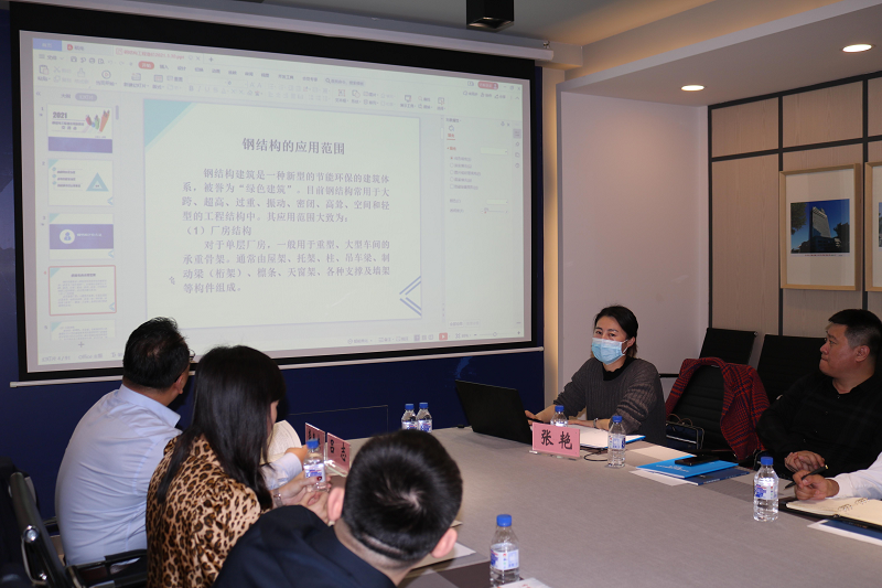 张艳副总经理首先为大家授课。她从钢结构计价方法、合同价款可调项、预结算中应注意的事项三个方面,为大家分享多年来的做法和经验。她希望造价人员不但要敬业,还要适应行业发展变革的新形势,不断提高自身素质,加快实现未来职业角色的转变。