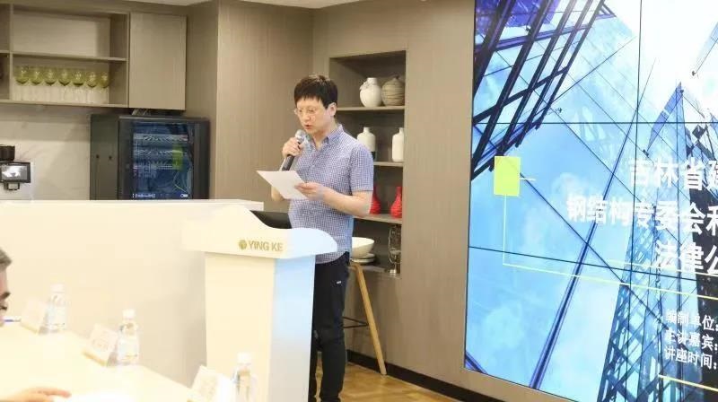 朱峰副秘书长在讲话中,简要说明了举办这次法律讲座的目的。即通过讲座引导企业重视法律知识学习,增强企业法律意识,帮助企业运用法律武器,有效解决经营管理中遇到的法律方面的困惑和难点问题,提高企业法律风险防范能力,维护企业合法权益,促进钢结构和消防防火行业健康发展。